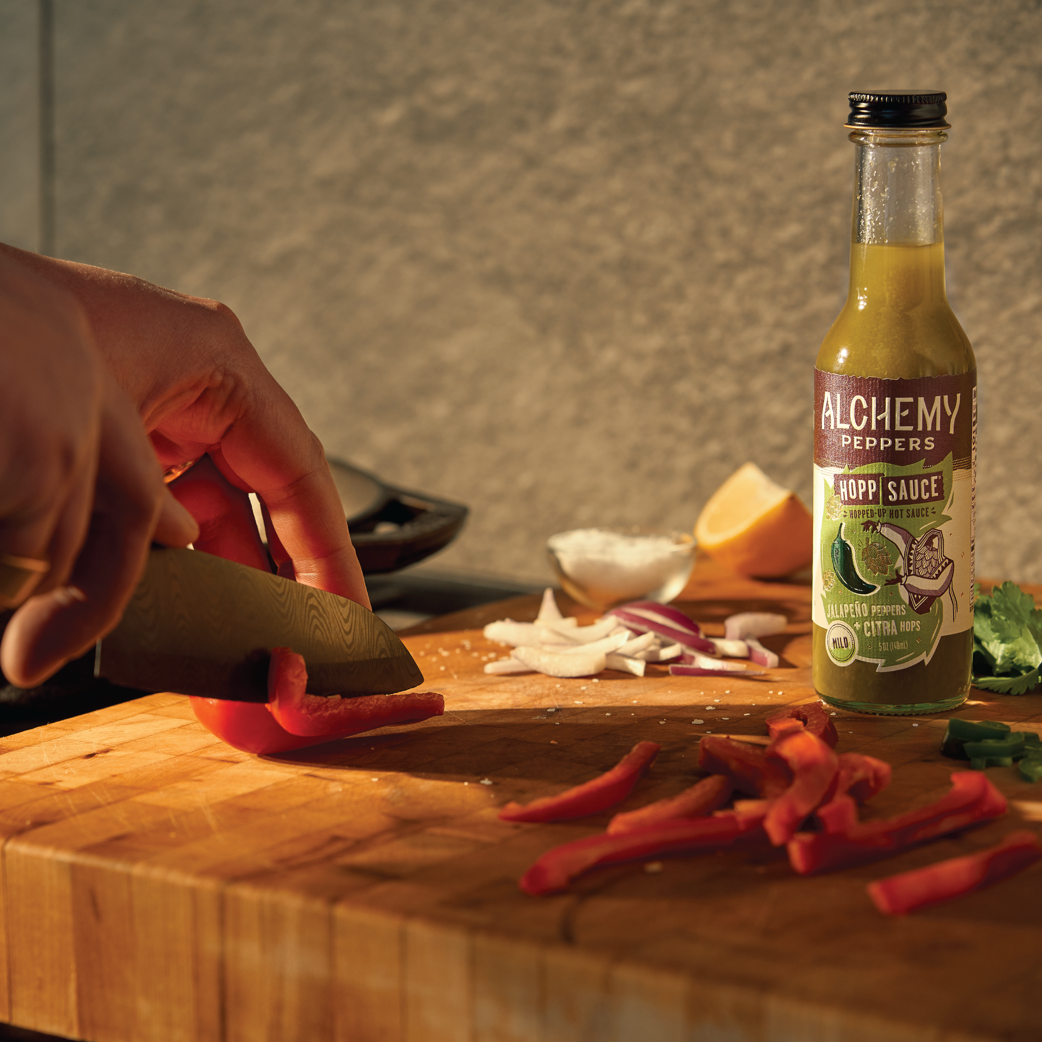Many companies ferment their peppers to preserve and flavor their sauces. At Alchemy, we believe that the freshest ingredients create the greatest taste. So no vinegar and no fermentation. In every bottle of Hopp Sauce, we let the fresh peppers speak for themselves.
