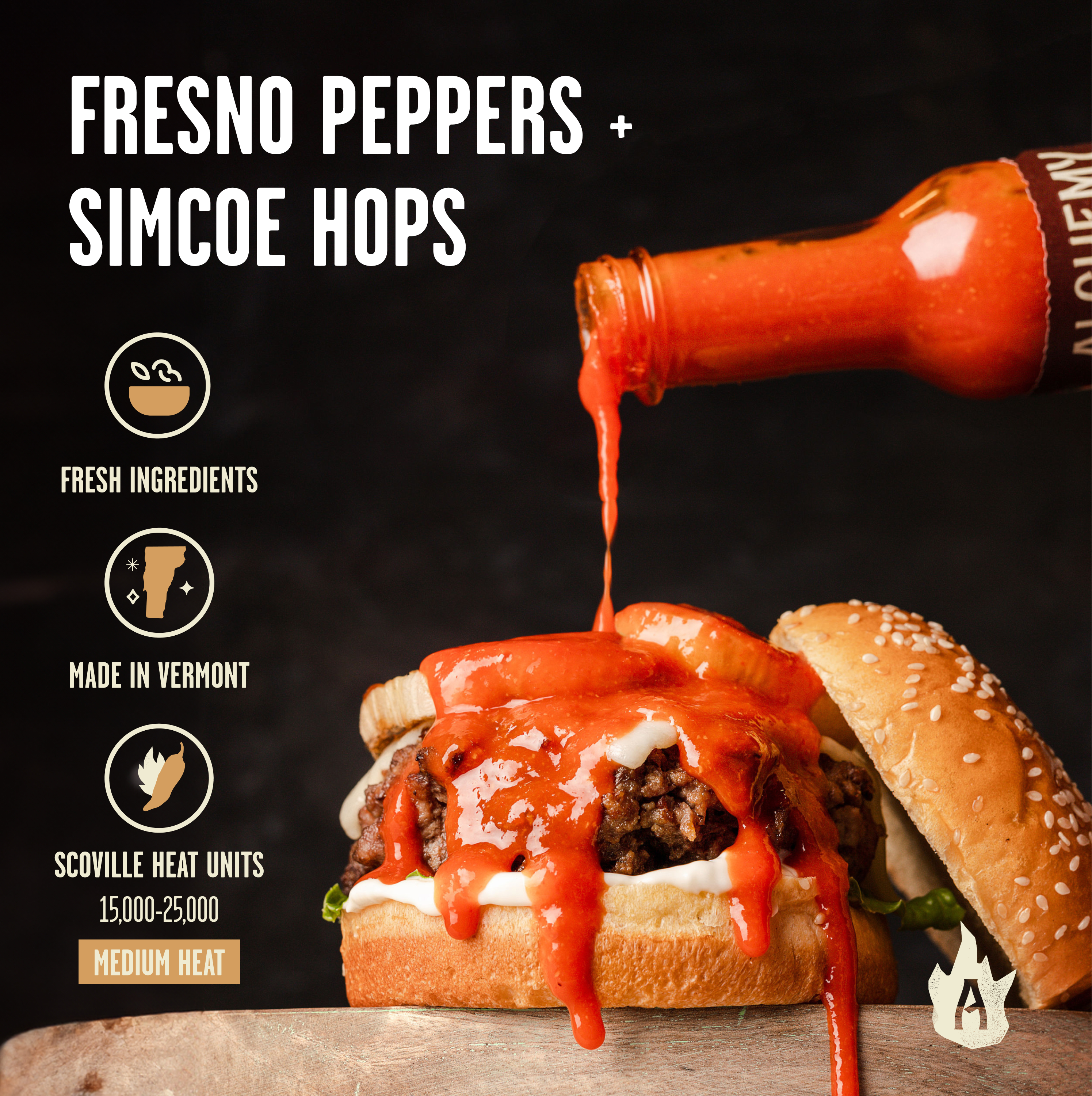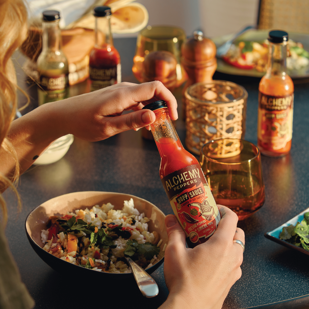 Many companies ferment their peppers to preserve and flavor their sauces. At Alchemy, we believe that the freshest ingredients create the greatest taste. So no vinegar and no fermentation. In every bottle of Hopp Sauce, we let the fresh peppers speak for themselves.