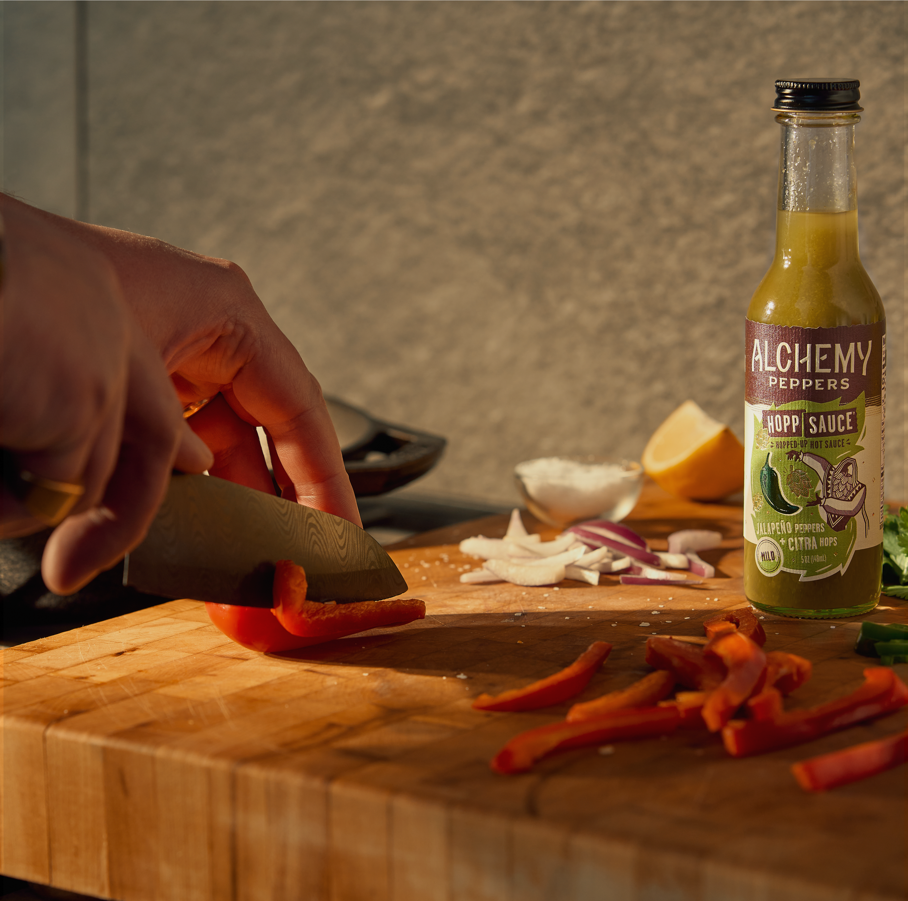 Many companies ferment their peppers to preserve and flavor their sauces. At Alchemy, we believe that the freshest ingredients create the greatest taste. So no vinegar and no fermentation. In every bottle of Hopp Sauce, we let the fresh peppers speak for themselves.